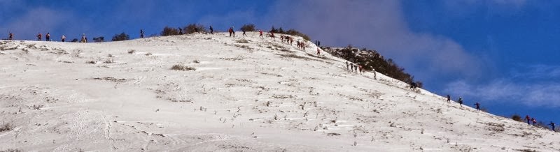 Vue sur l’ascenscion dans la neige lors du Trail du Massif des Brasses