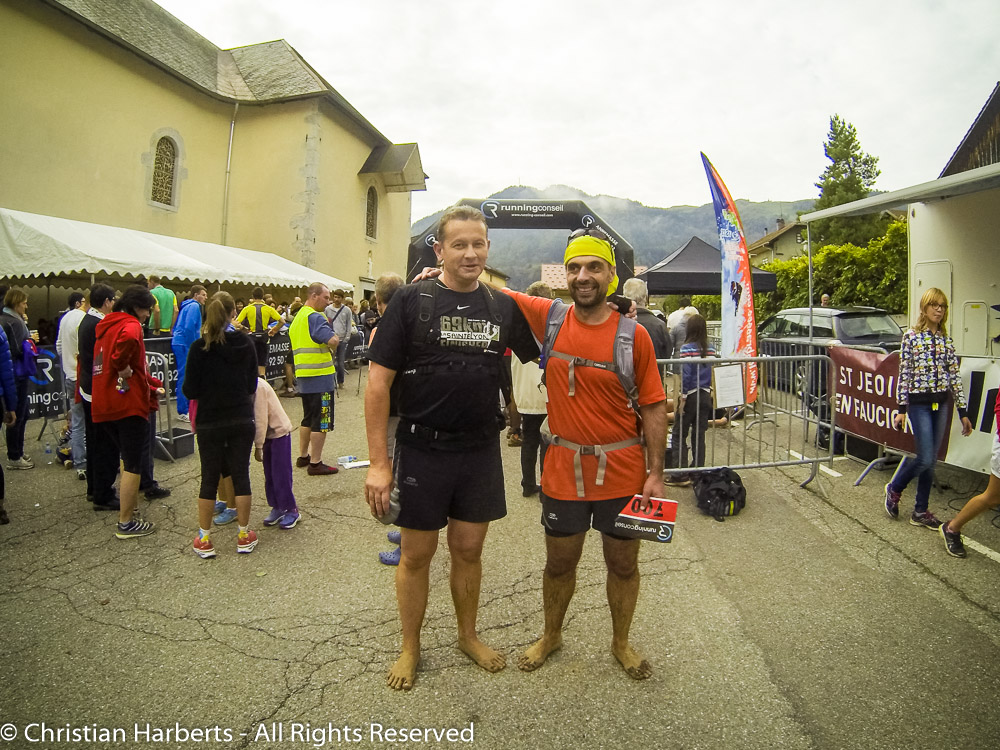EcoTrail du Massif des Brasses 2014 – Frédéric et Lambda, heureux de leur exploit, 15km pieds nus !!