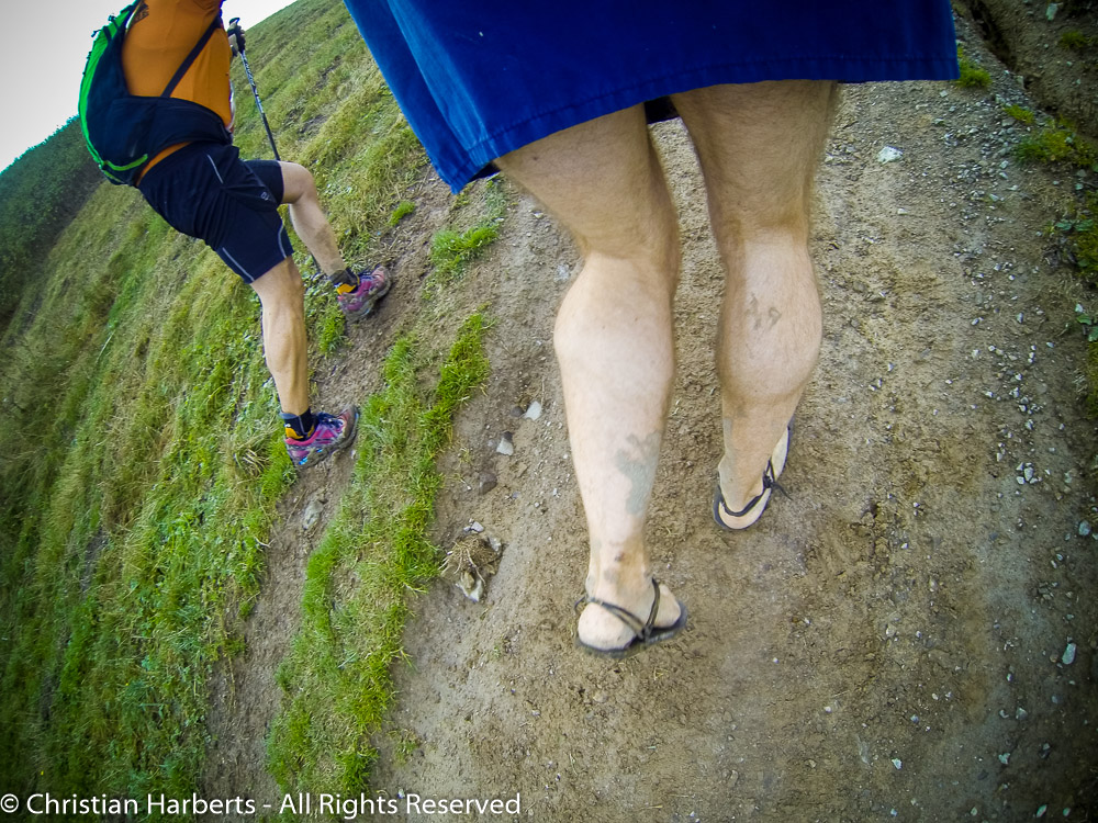 Et voilà deux de nos barefooteurs légendaires – tranquillement en train de monter vers le premier ravito, Lambda et Frédéric avait l’air d’apprécier leur parcours bien plus que moi !!
