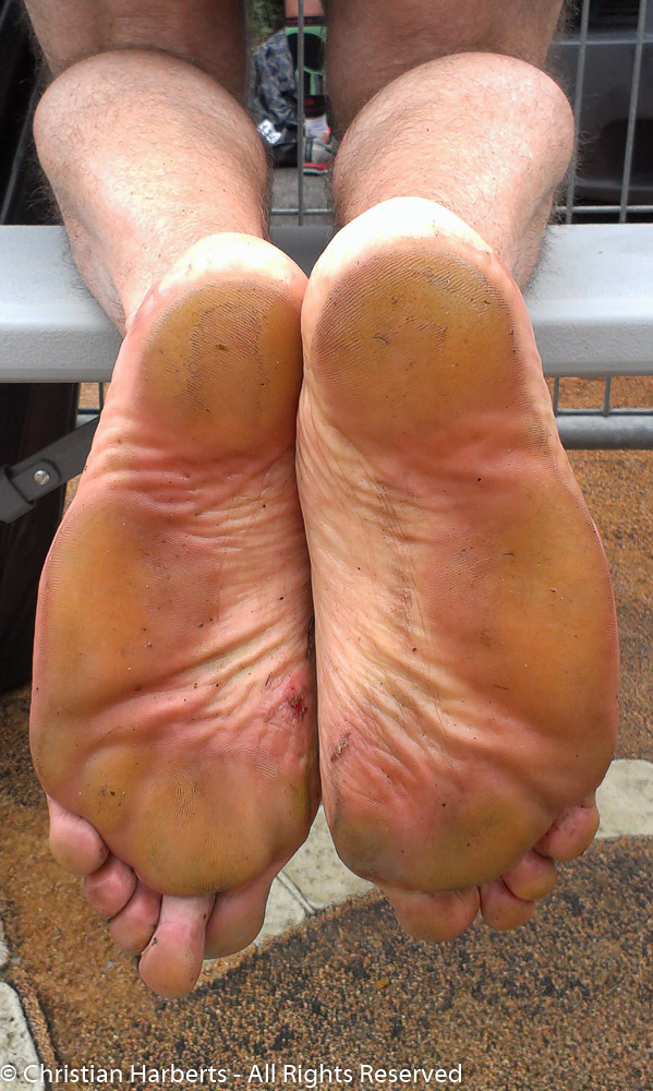 La bénévole m’a lancé, impressionné – « vous mériteriez deux médailles pour avoir couru sans chaussures ! » Une, ça me va, et à boire surtout ! Quel andouille, j’ai pas bu une seule gorgée de mon bidon, préférant des bouteilles d’eau que je trimbalais sur quasiment tout le parcours… Et je n’ai toujours pas assez bu, visiblement.
