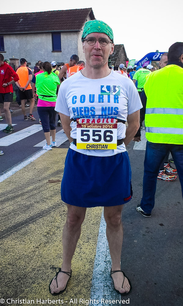 Vingt-quatre mois, 5 marathons pieds nus. Il y a exactement deux ans, je courais mon premier marathon pieds nus, ici-même, au marathon Seine Eure 2012. Deux années ponctuées de nombreuses courses (3 participations à Paris-Versailles par exemple) et un nombre grandissant de sorties d’endurance avec d’autres passionnés. Je améliore encore sur ma technique et ma condition physique. Voyons comment mon cinquième marathon pieds nus s’est passé.