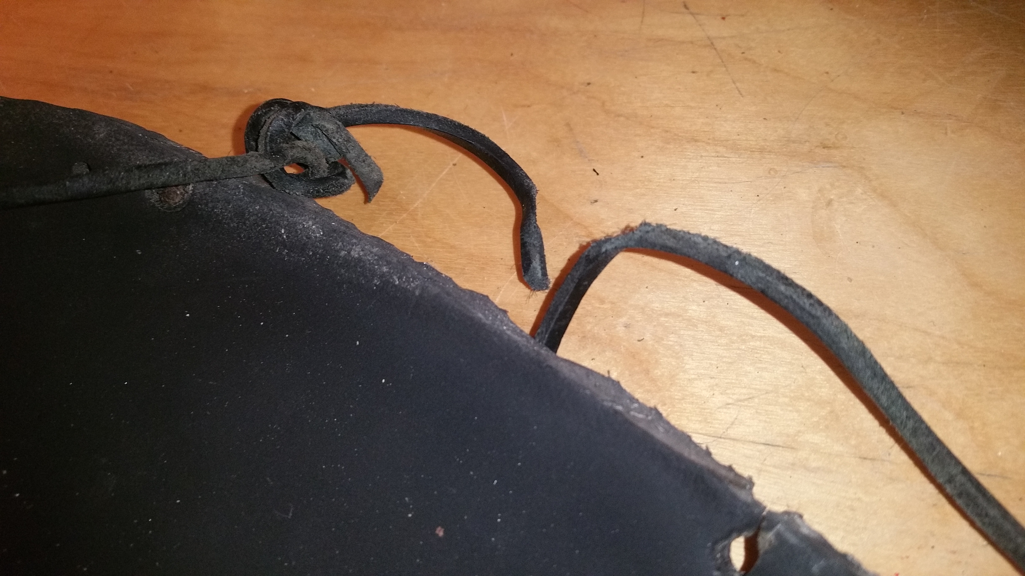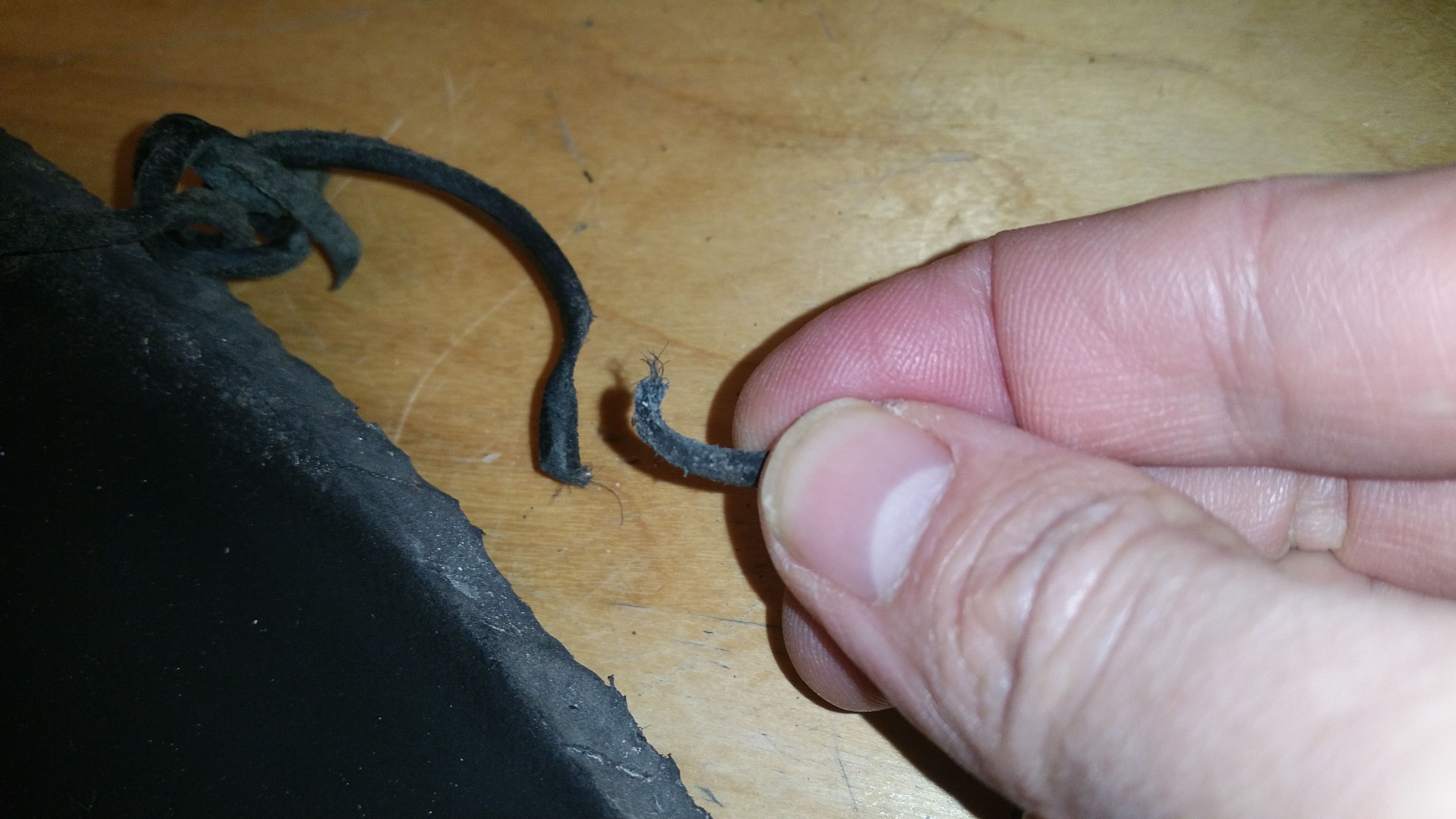 - Vérification des lanières – tirer dessus pour essayer de les casser, puis couper et refaire les noeuds sous l’avant de la sandale.