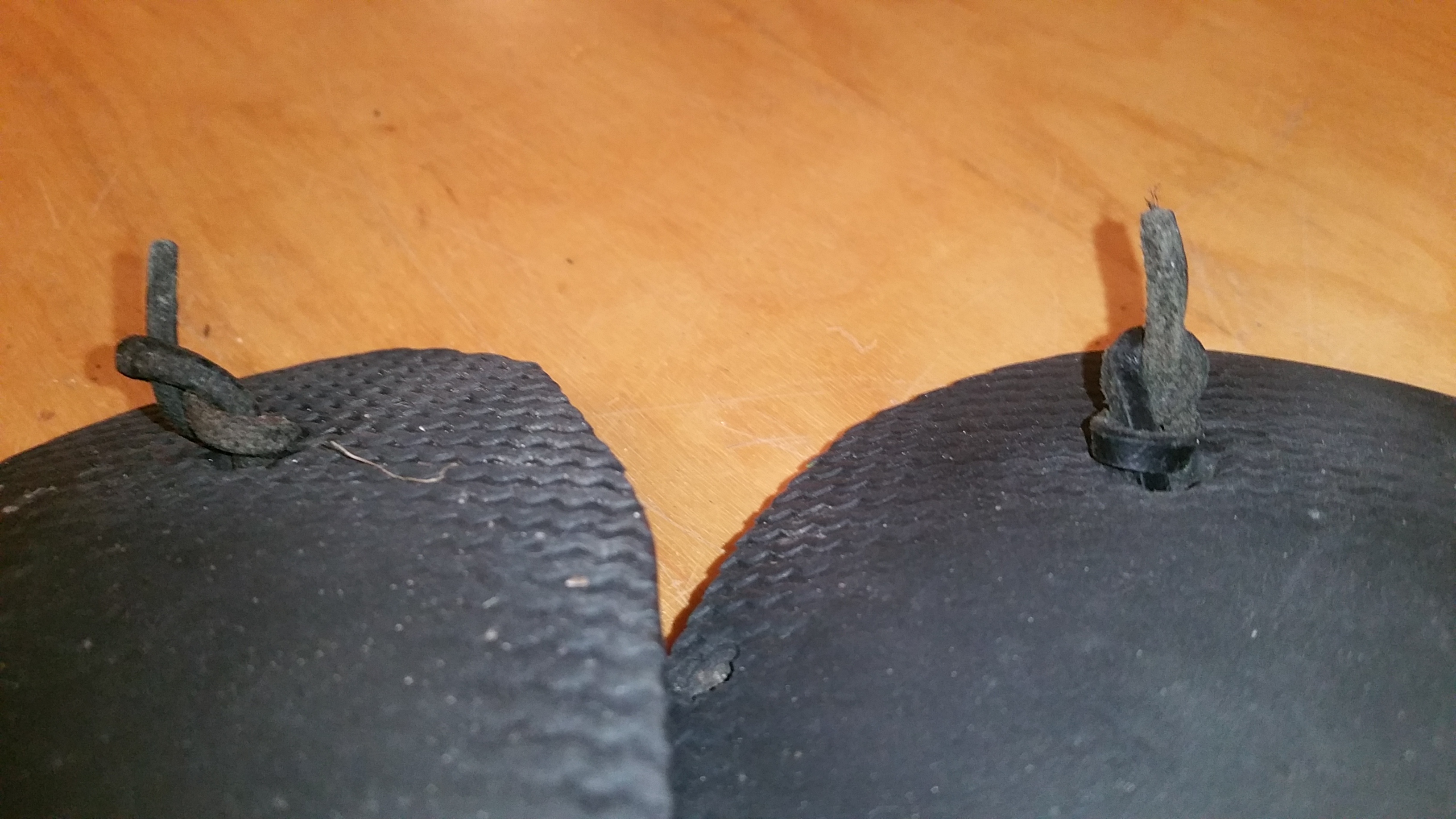 Les noeuds sous les sandales. Oui, ça s’use, puis ça casse toujours au mauvais moment.