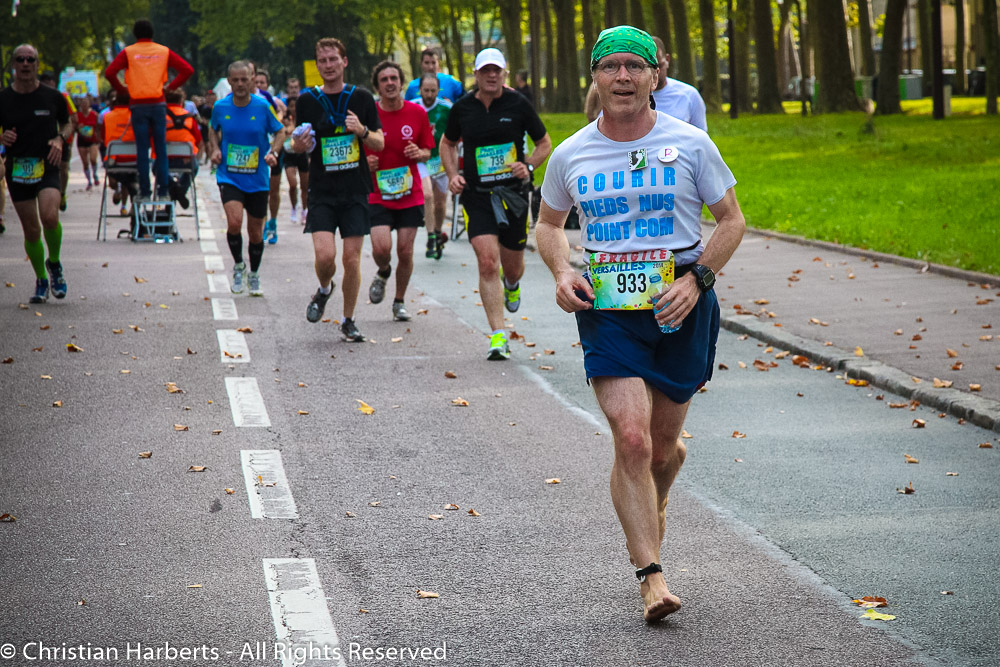 4ième participation pieds nus de Christian Harberts à la course Paris-Versailles 2014
